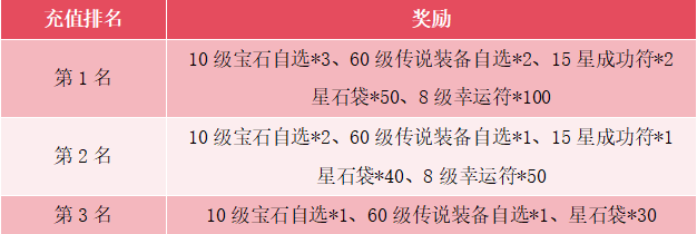 2.充值相同金额的勇士将按照满足条件的时间先后顺序进行排名。
